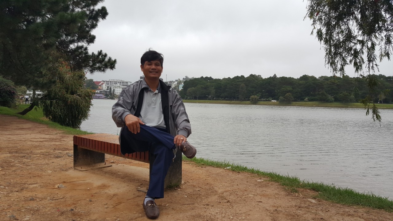 Thanh Nguyễn Ngọc ngồi bên dòng sông phẳng lặng