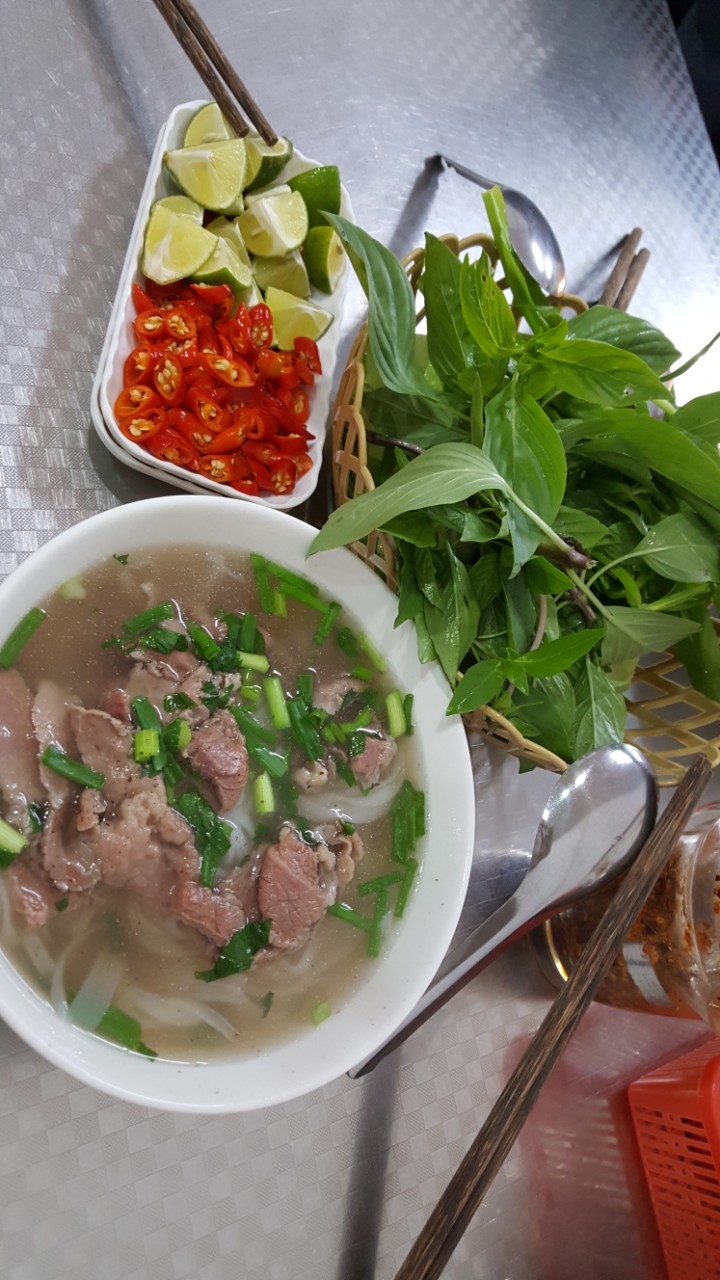 Buổi tối với tô phở ngon đúng điệu, nước lèo nóng bốc lên thơm hương vị, công nhận cách chế biến của đầu bếp quá tuyệt, không chê vào đâu được. Chưa bao giờ ăn tô phở ngon như lúc này, đặc biệt rau xanh tươi rói.