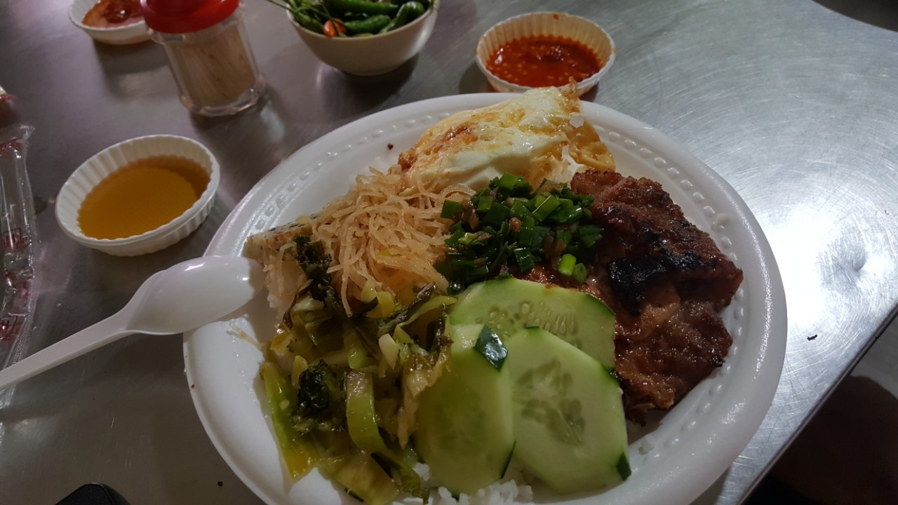 Buổi trưa với đĩa cơm tấm cũng khá thú vị, ấm lòng với bếp than nóng hổi khi thấy khối thịt đang nướng trong lò, xua tan cái lạnh của mùa Thu cuối vào ngày mưa lê thê như thế.