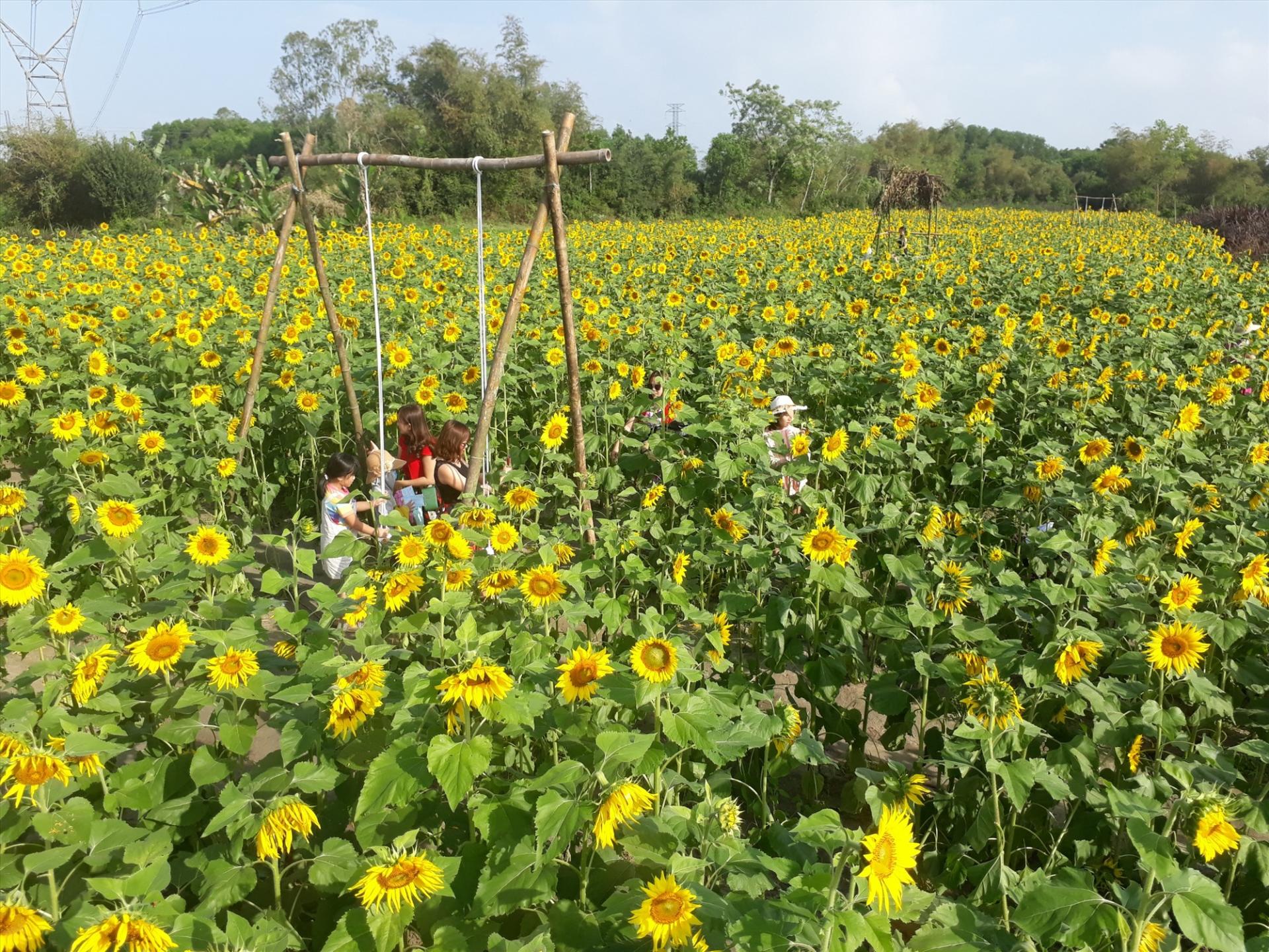 Cánh đồng hoa hướng dương tại phường Hòa Thuận thu hút du khách đến check-in. Ảnh: T.Q