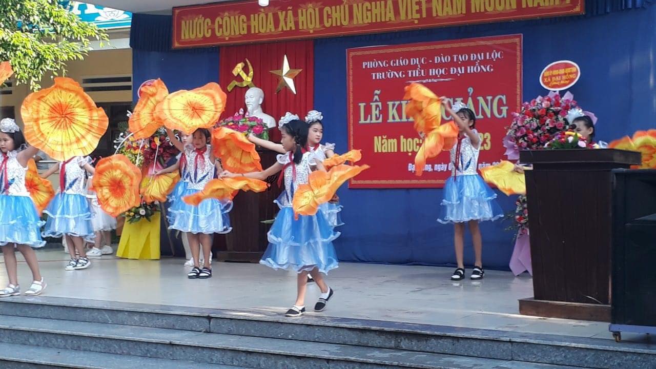 Được biết lễ khai giảng của Trường Tiểu học Đại Hồng năm nay diễn ra với thời lượng khá ngắn gói gọn trong 1 giờ đồng hồ nhưng đầy đủ các tiết mục từ giới thiệu chương trình năm học mới, văn nghệ chào mừng và báo cáo thành quả hoạt động của năm học vừa qua và phương hướng nhiệm vụ của năm học mới này.