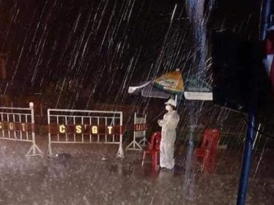 Nơi tuyến đầu luôn lặng lẽ, giờ này trong nhà ai cũng đã quây quần bên nhau, nhà nào cũng đầm ấm không khí gia đình, ấy vậy mà ngoài kia các con đường vẫn còn các đồng chí, đồng đội vẫn âm thầm đứng gác tại các chốt chặn để làm nhiệm vụ. Mặc cho mưa giăng ngang, mặc cho cái nóng bốc lên khi cả ngày đêm trong trang phục đồ bảo hộ, người chiến sĩ ấy vẫn cứ thế say sưa với công việc vốn dĩ quen thuộc hằng ngày xuyên đêm như thế! Mong sao các lực lượng ấy vẫn giữ vững tinh thần và niềm tin đầy nhiệt huyết, đảm bảo sức khỏe tốt để có thể tiếp tục chiến đấu mùa Covid, truy vết F0 một cách nhanh nhất có thể trong thời gian giãn cách này.
