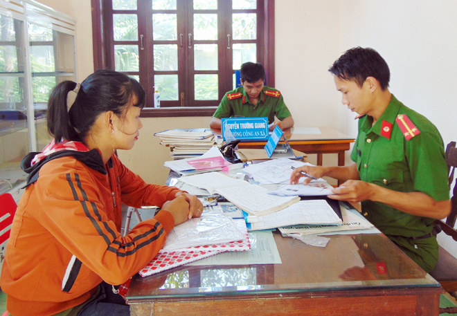 Công an xã Quế Mỹ giải quyết thủ tục hành chính cho người dân