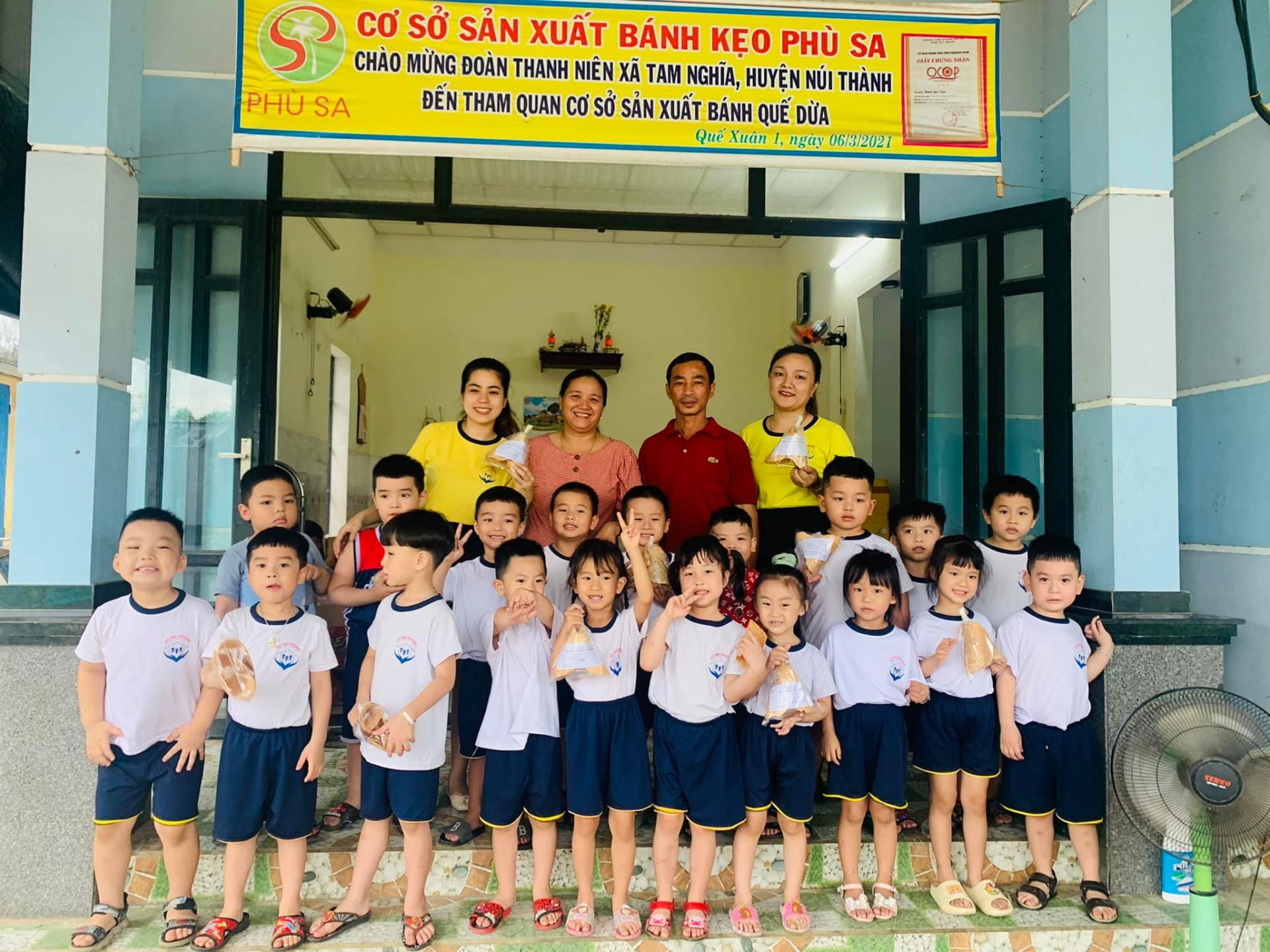 Nhân dịp cuối tuần, vào sáng thứ Bảy ngày 02/06/2022, Cô và trò Khối Ichigo (Khối Lớn) Trường Mầm non Việt Nhật thuộc KPC Nam Phước, huyện Duy Xuyên ghé tham quan Cơ sở sản xuất Bánh quế dừa thuộc Tổ 4, Thôn Phù Sa, Xã Quế Xuân 1, Huyện Quế Sơn, Tỉnh Quảng Nam của ông Phan Trường Âu.
