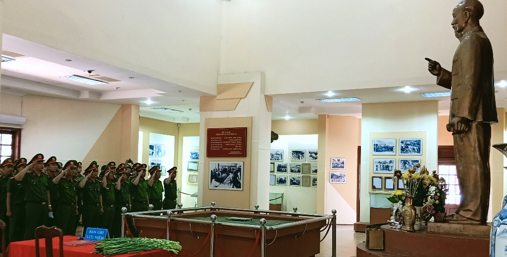 Tuổi trẻ Cụm công tác đảng và công tác quần chúng số 4 dâng hoa, viếng hương Chủ tịch Hồ Chí Minh tại Khu di tích An ninh khu 5. Ảnh: M.L