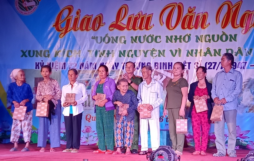 Tặng quà gia đình chính sách khó khăn tại Đại Lộc. Ảnh: M.L